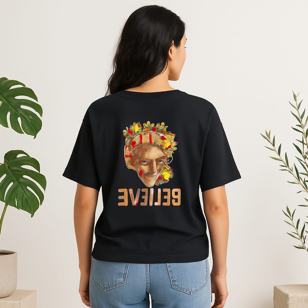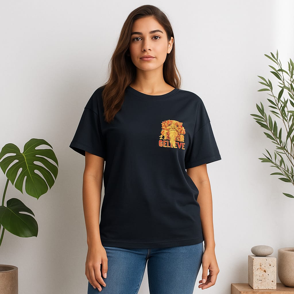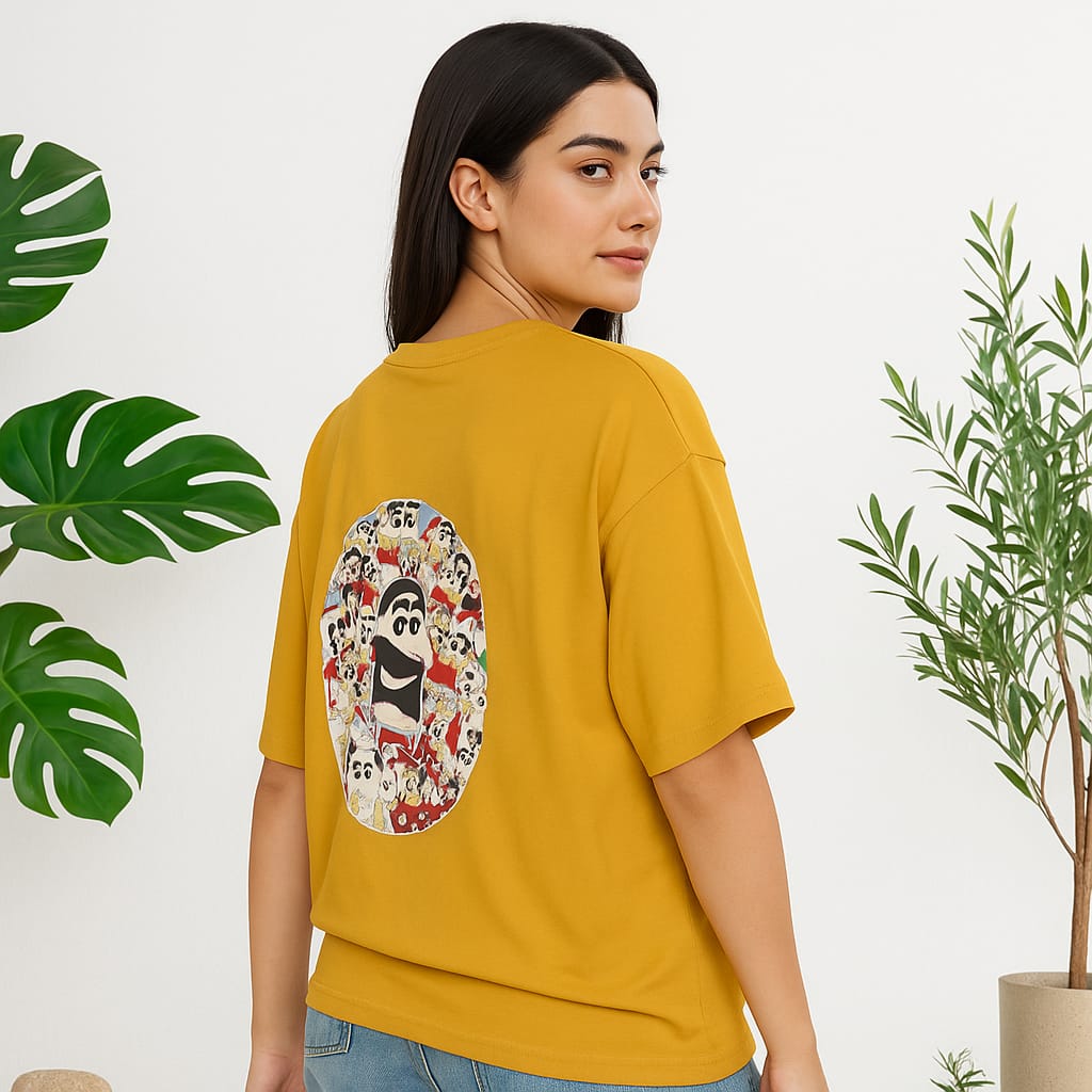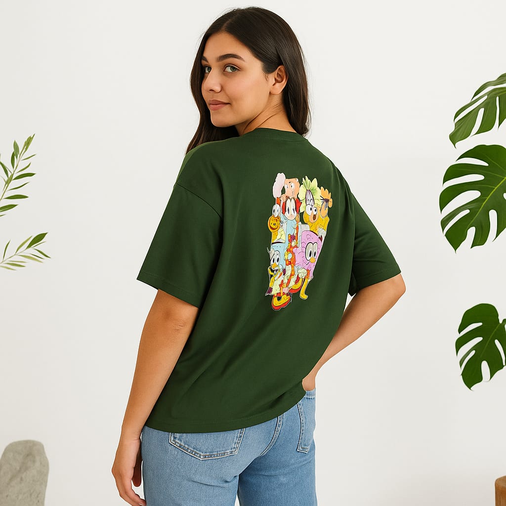 Step up your casual style with this trendy oversized t-shirt, featuring a bold and quirky Graphic Front-Back print that adds instant personality to your look. Made from soft, breathable cotton blend fabric, this tee offers all-day comfort while keeping you effortlessly stylish. The relaxed fit and dropped shoulders make it perfect for pairing with jeans, shorts, or joggers for that easygoing, streetwear vibe.